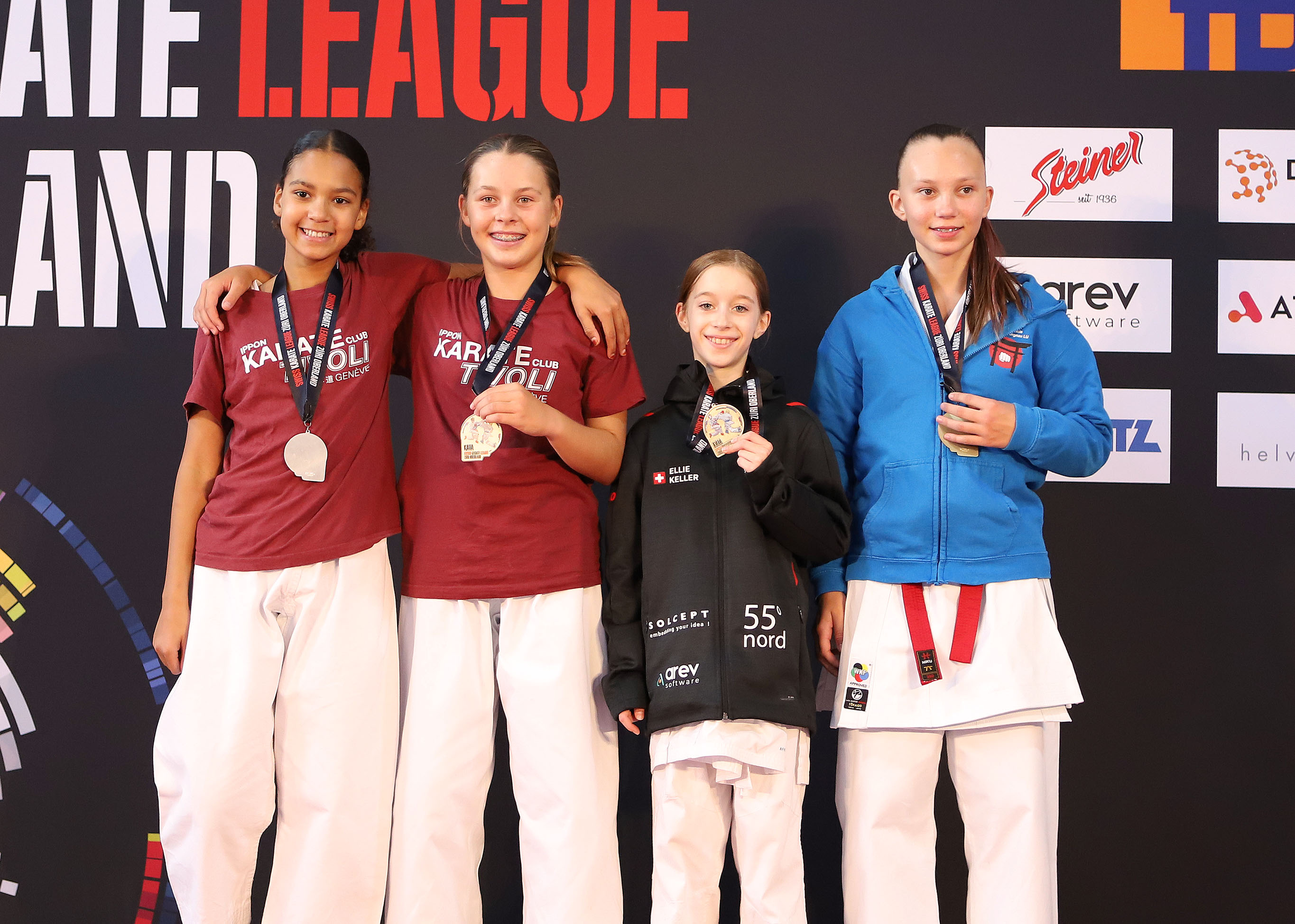 Siegerehrung, Schweiz, Swiss Karate League, 2025, Gossau, Züri Oberland, Ippon Karaté Club Tivoli Genève, Isla Preston Rico, Aissata Sissokho, Ellie Keller, Jaroslava Lanner, Shukokai Dojo Wetzikon, KS Langnau LU